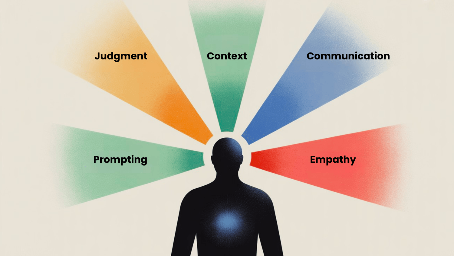 Here is the short version. AI drafts and sorts. Humans judge, decide, and motivate. The skills that rise in value are the ones that shape goals, add context, and earn trust.